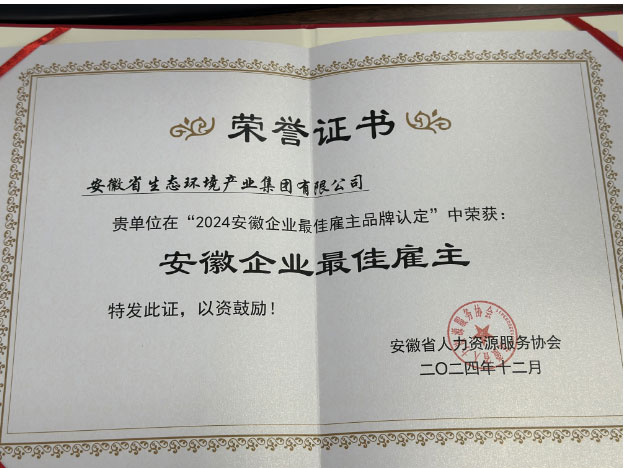 新年伊始,在由安徽省人力資源和社會保障廳指導、安徽省人力資源服務協(xié)會舉辦的“2024安徽企業(yè)最佳雇主品牌認定”活動中,省生態(tài)環(huán)境集團因出色的人力資源管理能力和良好的雇主口碑,榮獲“安徽企業(yè)最佳雇主”。