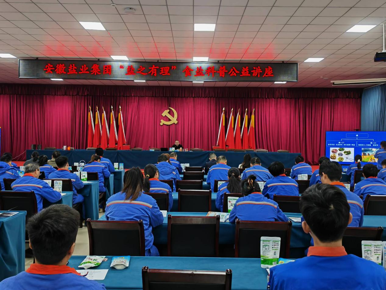 為傳播科學用鹽理念、助力“健康中國”行動,倡導減鹽低鈉的合理膳食習慣,3月13日,省鹽業集團黨委副書記、工會主席李江,副總經理江南帶領科普團隊前往安徽華塑股份有限公司,開展“‘鹽’之有理”食鹽科普公益講座。安徽華塑股份有限公司黨委副書記、總經理段舒寶、工會主席范永瑯及60余名員工共同參與活動。